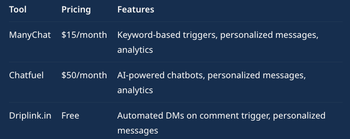 While tools like ManyChat and Chatfuel are great, Driplink stands out as a simple and free solution designed for creators.
